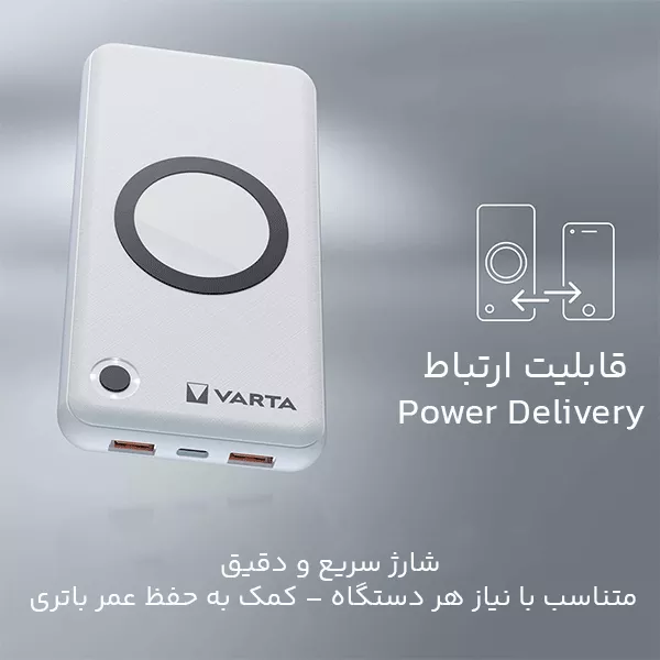 پاوربانک وایرلس فست شارژ وارتا ظرفیت 15000 میلی آمپر