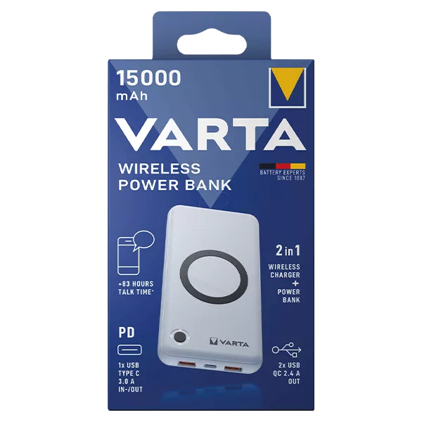 Varta Fast Charging Wireless Power Bank, 15,000 mAh Capacity