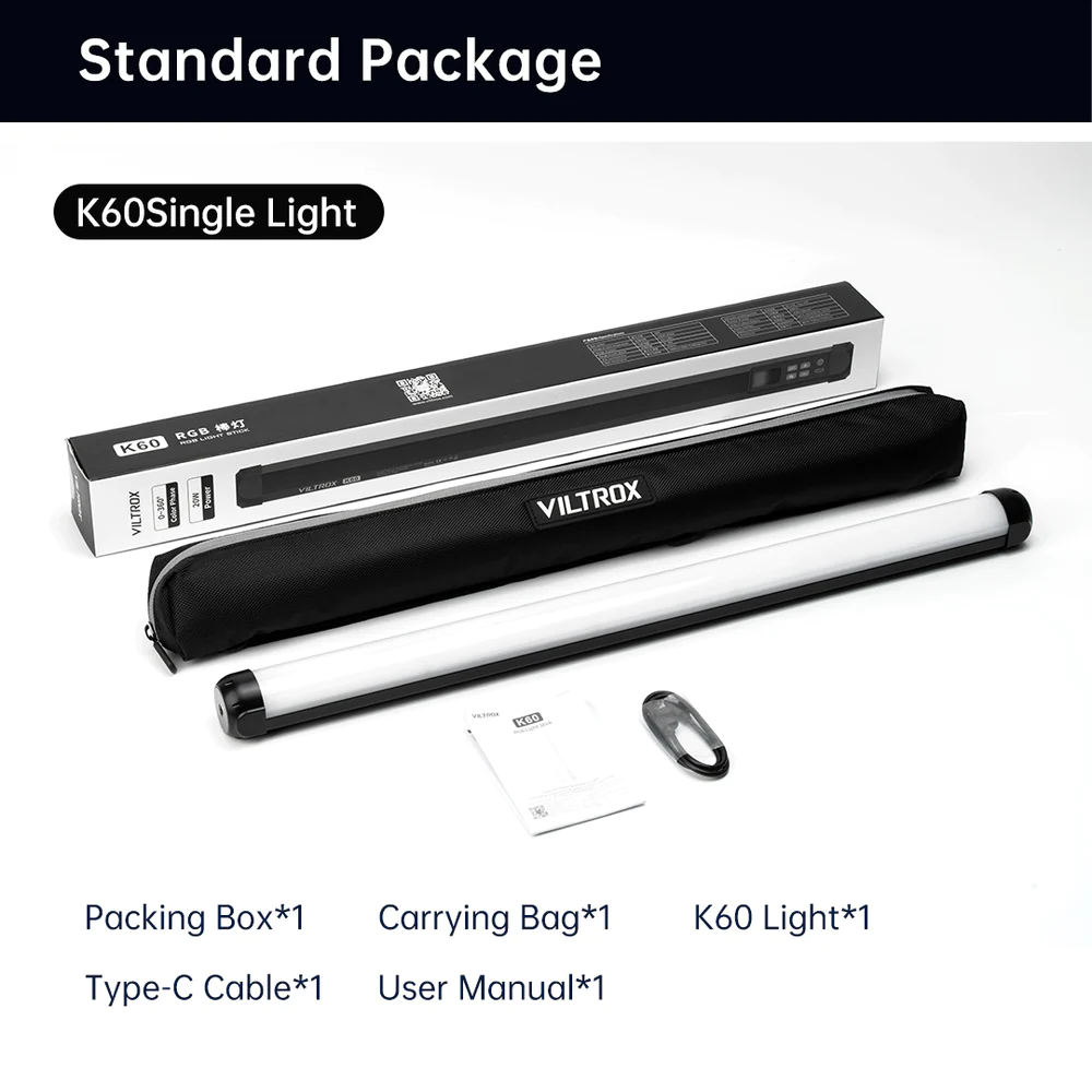 در مجموع، اگر به دنبال خرید یک نور باتومی حرفهای با کیفیت ساخت بالا و امکانات گسترده هستید، VILTROX K60 RGB LED Tube Light یکی از گزینههاییست که میتواند نیازهای شما را به خوبی برآورده کند.