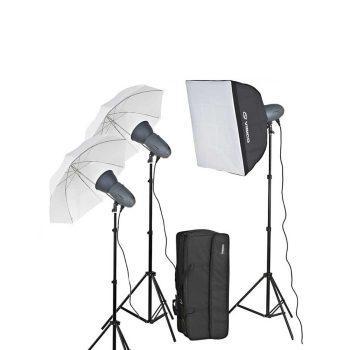 در این سیستم تجهیزاتی از جمله سه هد فلاش، دو کاسه استاندارد و سه عدد پایه نور بادی نیز تعبیه شده است. به واسطه این لوازم جانبی می توان موقعیت و وضعیت نورها را در حالت های مختلف و مد نظر تنظیم نمود. همچنین می توان به دیگر تجهیزاتی که در این مجموعه موجود است به یک سافتباکس ۱۰۰×۸۰ و یک چتر مشکی با جداره داخلی نقرهای اشاره کرد. به وسیله این دو ابزار میتوان جریان نور یکنواختتری را به سوژه تاباند و در نتیجه سایههای محوتری را به دست آورد.