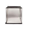 سطح بیرونی این لایت باکس مکعبی شکل، با یک پارچه برزنتی مشکی رنگ پوشانده شده تا نور از آن خارج نشود. سطح داخلی پلاستیکی و پارچهای، رنگی روشن و شفاف دارد که نور را از منبع نوری گرفته و در سطوح مختلف منعکس میکند تا سایهها را محو کرده و نورپردازی از هر زاویه را ایجاد کند.