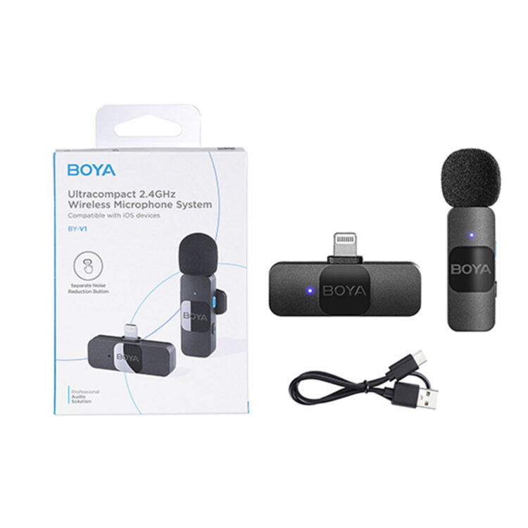 میکروفن بی سیم بهترین انتخاب برای تولید محتوای صوتی باکیفیت است. میکروفون بی سیم بویا مدل Boya BY-V1 از لحاظ قیمت و کارایی در میان سایر تجهیزات صوتی حرف اول را میزند. یک میکروفون خوب، کیفیت تولید محتوا را افزایش میدهد. میکروفونهای بویا انواع مختلفی دارند. یکی از این تجهیزات مدل BY-V1 است. این میکروفونِ بی سیم بویا برای فیلمبرداران و سازندگان ویدئو مناسب است. این افراد برای تولید محتوا به بهترین میکروفون نیاز دارند. این نوع میکروفون همه فن حریف بوده و کار شما را در هر شرایطی راه میاندازد. این تجهیزات برای ضبط صدا و پادکست و… کاربرد دارند.