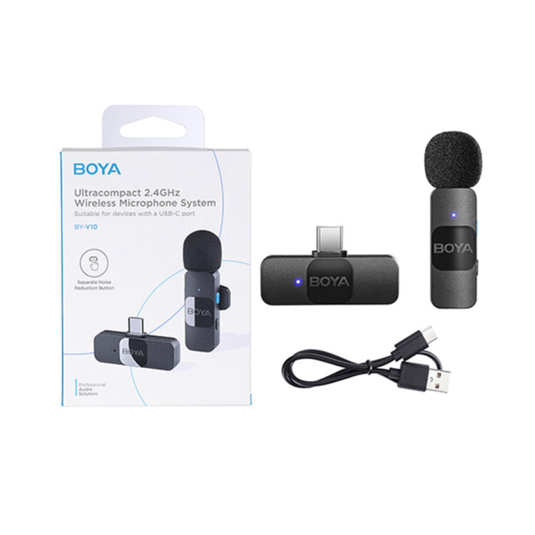 میکروفن بویا Wireless microphone Boya BY-V10 یک سیستم بی سیم مینی در حدود ۲۰ تا ۱۶ کیلو هرتز به شمار میآید که با توجه به ضبط صدای با کیفیت جهت وبلاگ نویسی، پخش زنده، خبرنگاری، بلاگری و همچنین دیگر برنامههای ضبط صدا بسیار مناسب است.