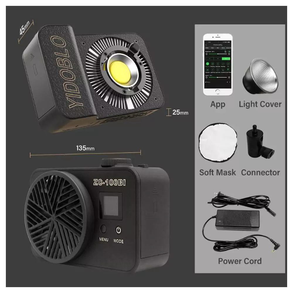 یکی از مهمترین مزایای ویدئو لایت Yidoblo ZC-100BI توان نوری بالای آن است که با خروجی 30000 لومن میتواند فضای بزرگی را بهخوبی روشن کند. قابلیت تنظیم دمای رنگ از 2700K تا 7500K نیز انعطافپذیری بالایی در تنظیم نورپردازی ایجاد میکند. علاوه بر این، امکان کنترل از طریق اپلیکیشن موبایل به شما این امکان را میدهد که از راه دور تنظیمات نور را تغییر دهید. داشتن فن داخلی نیز باعث میشود گرمای تولیدشده به خوبی دفع شده و عملکرد دستگاه در شرایط طولانیمدت پایدار بماند.