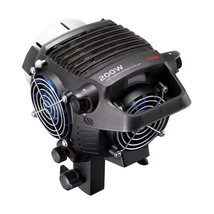 Zhiyun MOLUS B200 دارای خروجی نوری 39900 لوکس در فاصله 3.3 اینچی با بازتابنده است که قدرت کافی برای نورپردازی در فضای داخلی یا خارجی فراهم میکند. دمای رنگ قابل تنظیم بین 2700 تا 6500 کلوین است که این امکان را میدهد تا نور مورد نظر خود را برای هر شرایطی به راحتی تنظیم کنید. علاوه بر این، این لایت با برق AC کار میکند و به شما امکان استفاده طولانیمدت بدون نگرانی از باتری را میدهد.
