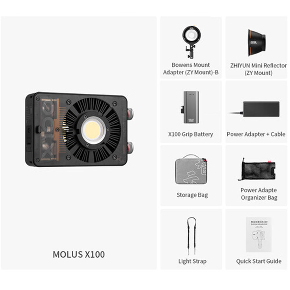 مشخصات شاخص Zhiyun MOLUS X100 Bi-Color Pocket COB Monolight (Combo Kit) |