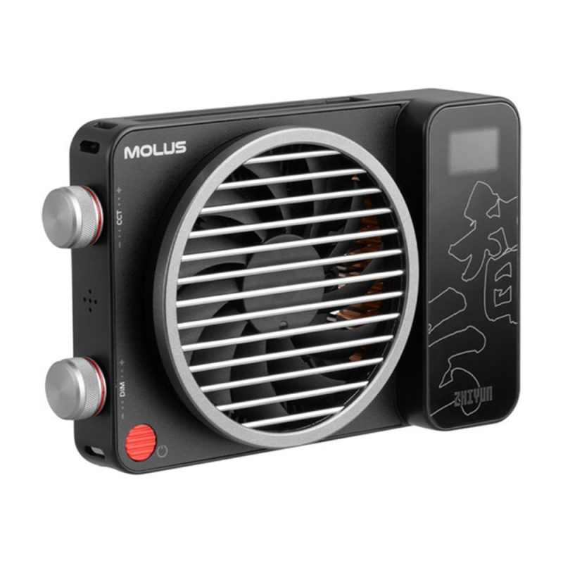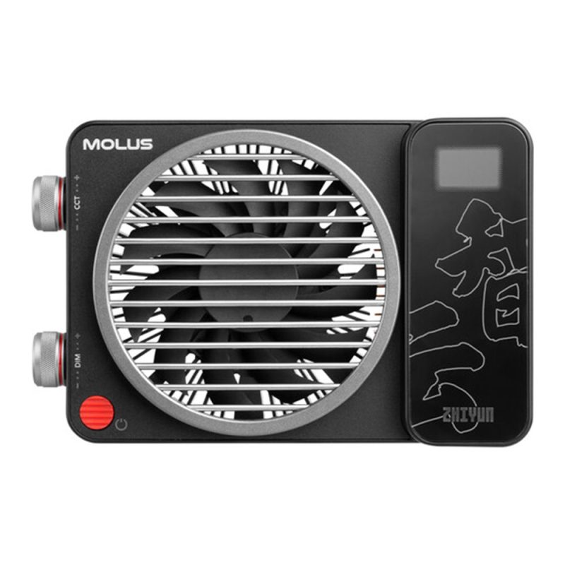 ویدیو لایت ژیون X100 کمبو Zhiyun MOLUS X100 Combo با داشتن وزن 385 گرم و حجم 144 x 94 x 36 میلیمتر، همانطور که در نام آن نیز ذکر شده یک ویدئولایت جیبی بوده و به شما اجازه خواهد داد تا آن را به راحتی در کیت لوازم عکاسی و فیلمبرداری خود به همراه داشته و به هر کجا که میخواهید حمل کنید. با در دست گرفتن این ویدئولایت، در پشت آن فن، صفحه نمایش کوچک و دکمه روشن/خاموش را مشاهده کرده، در سمت چپ چرخانکهای تنظیم نوردهی و دمای رنگ/نور دیده میشوند و در جلو و سمت راست نیز به ترتیب منبع نور و ورودیهای برق را خواهید یافت.