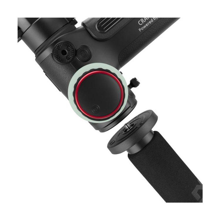 کاربر میتواند به طور مستقیم پارامترهای دوربین یا گیمبال را تنظیم کند و یا از ترکیب آنها بهره ببرد. به دکمههایی نظیر ضبط، توقف و شاتر دسترسی داشته باشید. ماژولارهای دسته به راحتی جدا شده و هر دو سرپیچهایی دارند که اکسسوریها با اندازههای مختلف به آن مانت mount میشود. یکی از مواردی که کنترل دو دستی دستگیره به کاربر اعطا میکند دسترسی به شات خلاق 330 درجه است. به سوژه نزدیک شوید و از زاویة جذاب 330 درجه اقدام به تصویربرداری کنید.