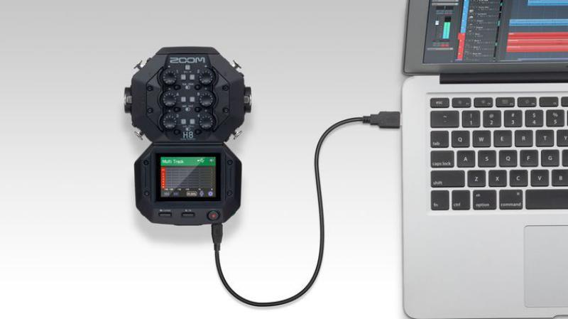 از این نظر نیز رکوردر صدا Zoom H8 یکی از بهترین ریکوردرها به حساب میآید و عملکرد بسیار قدرتمند و فوقالعادهای دارد. با استفاده از اتصال USB به کامپیوتر، لپ تاپ، آیپد و یا مک میتوانید تا حداکثر 12 کانال صوتی یا 12 ترک را به صورت همزمان ضبط کنید که بسیار عالی است.